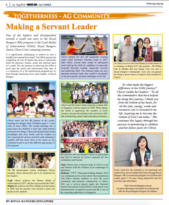 What’s the journey like for the Gold Medal of Achievement (GMA) recipients? Watch as the 2015 GMA recipients – Cheryl Lim & Janelle Ng share their stories and words of encouragement to RR leaders. Making a Servant Leader – Earning the Gold, Mentoring Unfolds One of the highest and distinguished awards a youth can […]